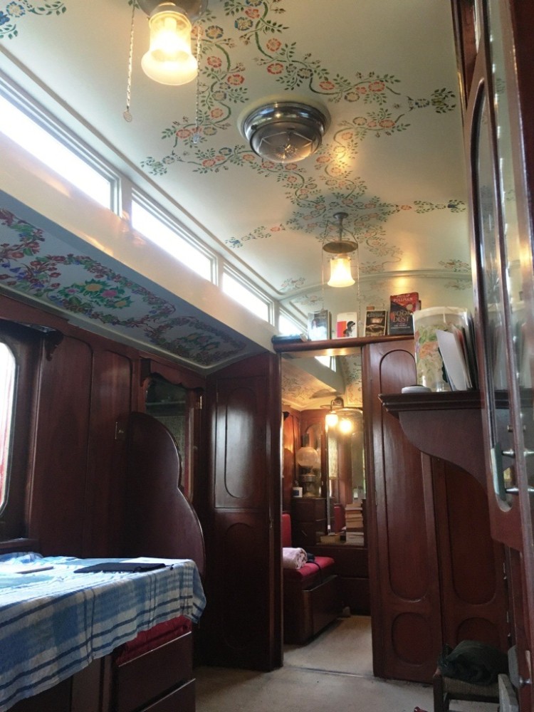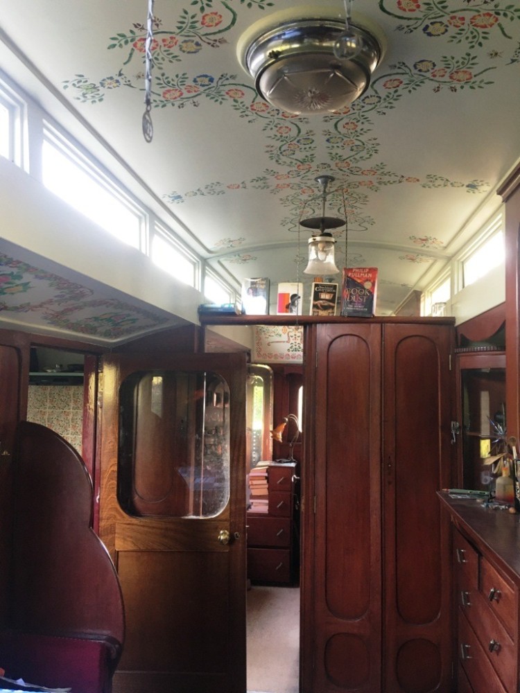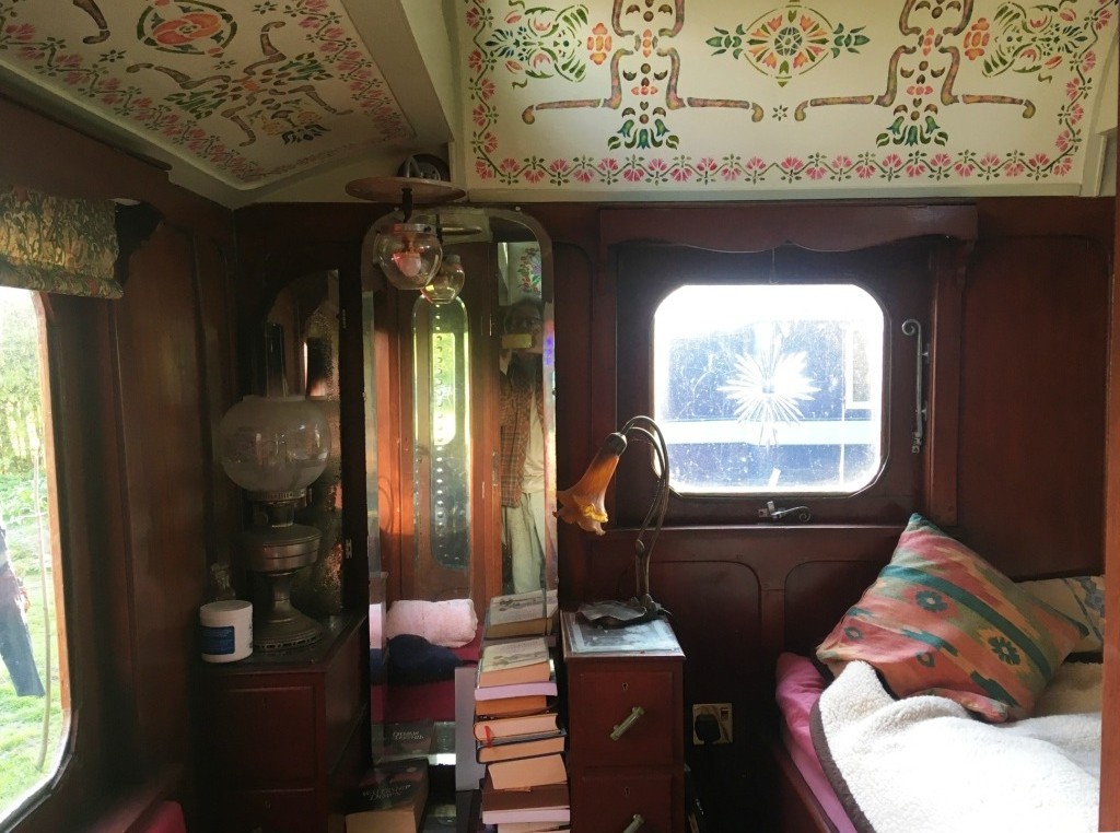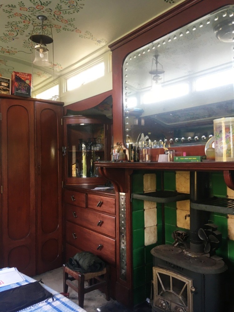 By the 1930s Brayshaw's were producing 'palaces on wheels' exclusively for showmen; the workmanship - and cost - was high. It is an articulated trailer, and would have been pulled by their traction engine from fair to fair. It would usually also have been pulled behind their show - so the steam engine did lots of work. It is 20', with a living room, bedroom and now has a solid version of the travelling porch (now a kitchen.) It's heated by a multifuel stove which keeps things cosy all year round, and has a mixture of electric (12v) lighting and gas lighting.