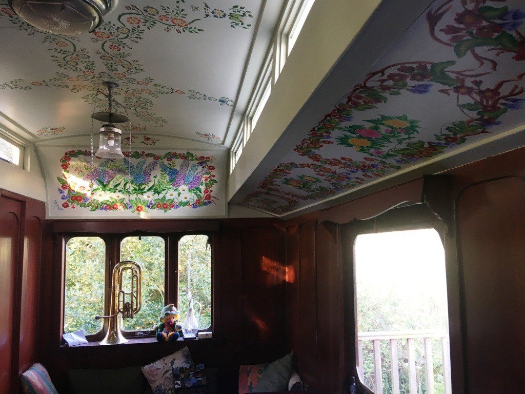We've had it since 1984, when we bought it from a bagpipe maker in Laurieston who was moving to Edinburgh. Since then it's resided at our villa garden in Gateshead, then Unthank and Greystoke Castle in Cumbria, and now is accompanying our 1947 Barker & Southern (the blue one) in Northumberland near Alnwick. In recent years it has enjoyed a thorough restoration with the dedicated input of expert carpenters and painters.