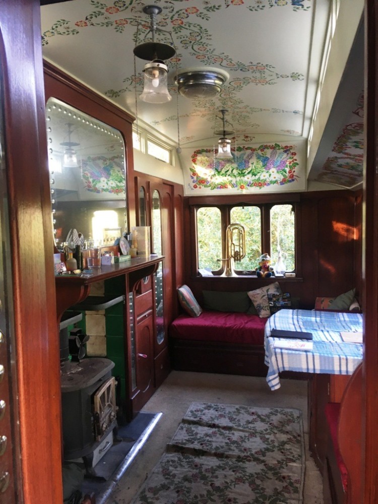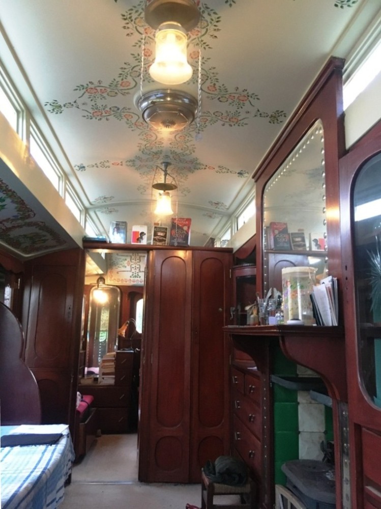 By the 1930s Brayshaw's were producing 'palaces on wheels' exclusively for showmen; the workmanship - and cost - was high. It is an articulated trailer, and would have been pulled by their traction engine from fair to fair. It would usually also have been pulled behind their show - so the steam engine did lots of work. It is 20', with a living room, bedroom and now has a solid version of the travelling porch (now a kitchen.) It's heated by a multifuel stove which keeps things cosy all year round, and has a mixture of electric (12v) lighting and gas lighting.